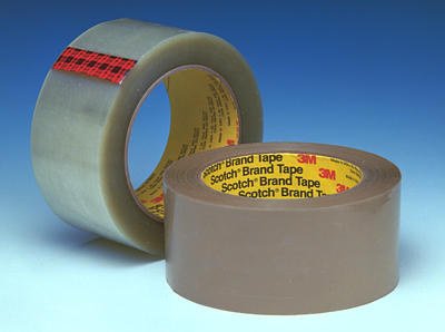 Best combination of all performance features in the Scotch(R) polyester line of tapes. Pressure-sensitive rubber resin adhesive bonds and seals corrugated boxes with more than 12,000 minutes adhesion to fiberboard. Heavy biaxially oriented polyester backing is easy to handle and dispense. Strongest resistance to abrasion. Resists moisture and scuffing. Highest edge tear and split resistance in polyester line. - Complies with environmental considerations of ASTM D1974-92. Meets CID A-A-1684B and ASTM D5486 Type III. Water-resistant per ASTM D5570. - Graphics show through clear backing. - Standard widths: 36, 48, and 72 mm